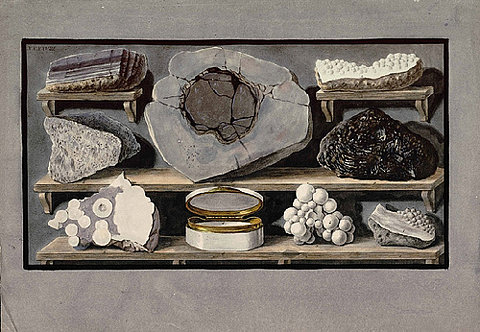 Charles, the Cavaliere’s nephew, is a collector, too, but to his uncle’s disappointment rough lumps of tufa with pieces of lava or marine shells embedded in them, the fragments of a volcano bomb, or the bright yellow and orange salts he was shown only made him think with passion of his crystallized rubies, sapphires, emeralds, diamonds—these could be called beautiful. He washed his hands often. And he resolutely refused to climb the mountain. Collections are solitary pursuits–no one else loves another’s collection enough. In the novel at least, a collector is, among many other things a natural bachelor. One wants to possess (and be possessed) alone. Collecting is solitary, yet competitive sport. A collector plays the game of dissembling interest in order to make the best deal. He is sometimes a looter, a thief carrying off illicit booty from Herculaneum and Pompeii to his stash underground.