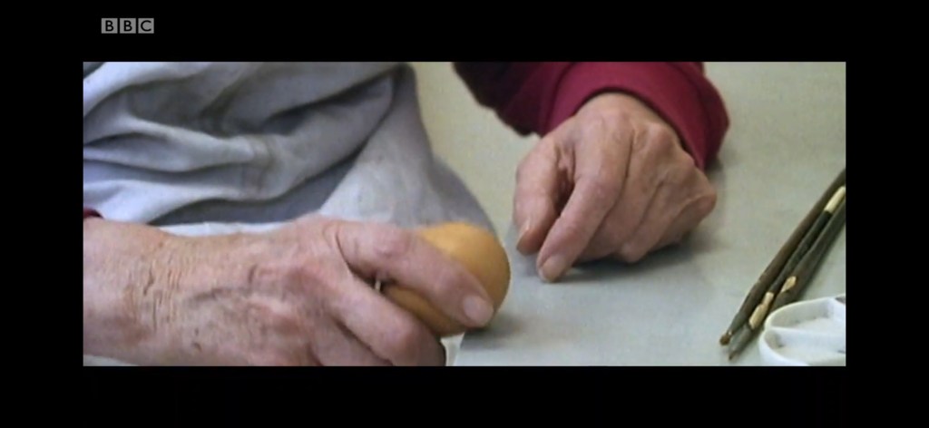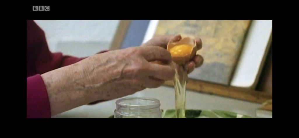 A short wall demarcates a space to which the manta ray woman alone is privy. Within it sits a well-rounded pale blue egg, the alchemical egg that holds all potential within it as a muddle of solar and lunar, female and male, sulphur and mercury, matter and spirit.