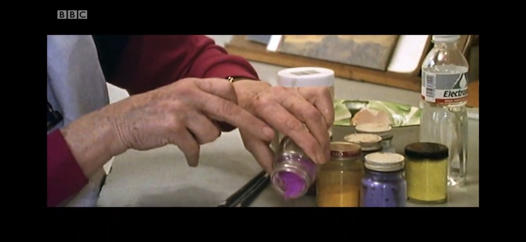 Carrington was partial to the medium of egg tempera. The concocting of yolk, vinegar and powdered raw pigment was a ritual that for her involved not so much the materia prima of paint but rather the ingredients for alchemical transformation. Alchemy was the subject that determined so much of her subject matter, and loomed largest in her cosmology. When laid onto wood panel, tempera paint dries into a matte, powdery surface well-suited for registering ineffable entities—light spirits of “snow, dust, and cinnamon,” to use Carrington’s phrase from her novella, The Stone Door (1977). In Carrington’s case, what lay just beyond the grasp of the five senses ultimately prompted a shift from the stuff to the stirring of spirits.